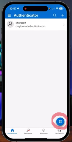 Öffnen Sie hierfür den Microsoft Authenticator und klicken Sie unten rechts auf das QR-Code-Icon.