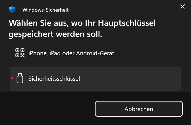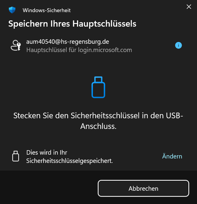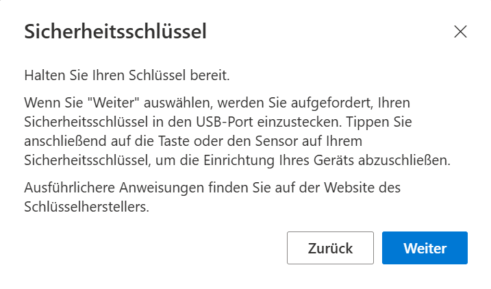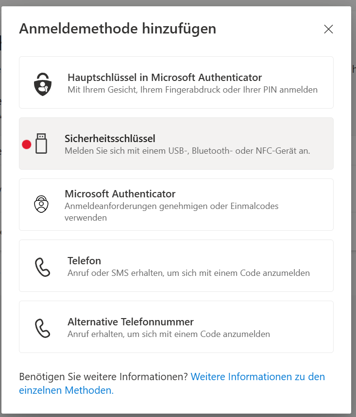 Es wird empfohlen, den Sicherheitsschlüssel (Yubikey) als zusätzlichen Sicherheitsfaktor einzurichten und für den Fall eines Verlusts einen weiteren Wiederherstellungsfaktor wie den Microsoft Authenticator anzulegen.
