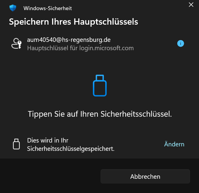 Microsoft Konto: Sicherheitsschlüssel (Yubikey) hinzufügen